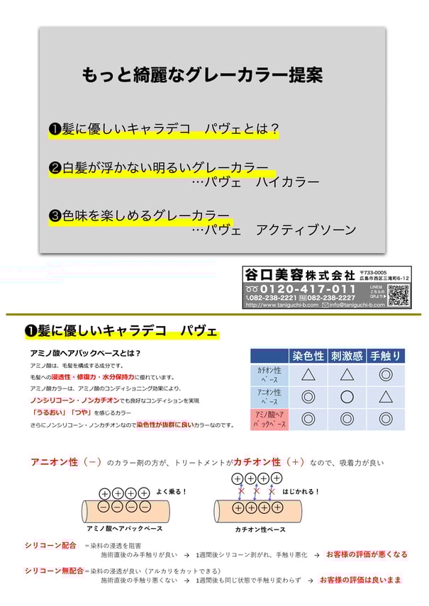 ①ダメージムラのある毛髪でも毛先のかかりすぎ等の失敗を防止し、薬剤選定や施術プロセスをより簡単に