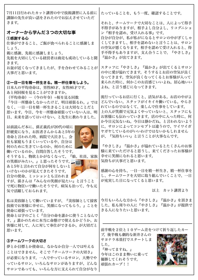 今月もたにぐちだよりをお届けします