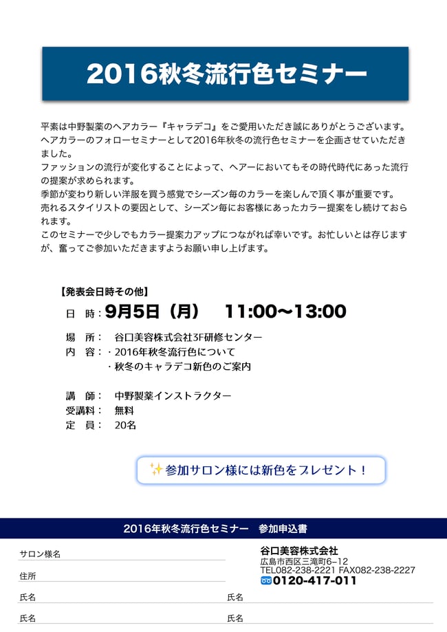 2016年秋冬流行色セミナー
