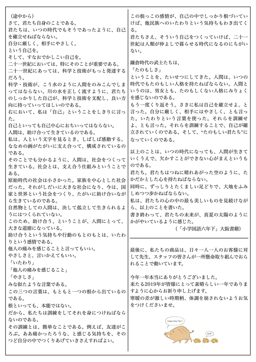 たにぐちだより2019年01月